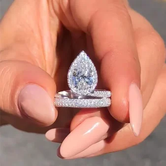 Style Sens avancé Le Sexe Femmes Modèle Géométrique, Les Gouttelettes D’Eau Concevoir Goutte D’Eau, Zircon Incrusté Matériel Le Cuivre Classification Anneau Poids 8g