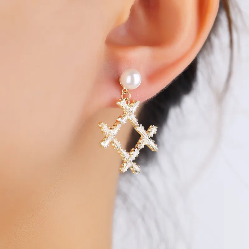 Boucle pendante Perle & Cristal