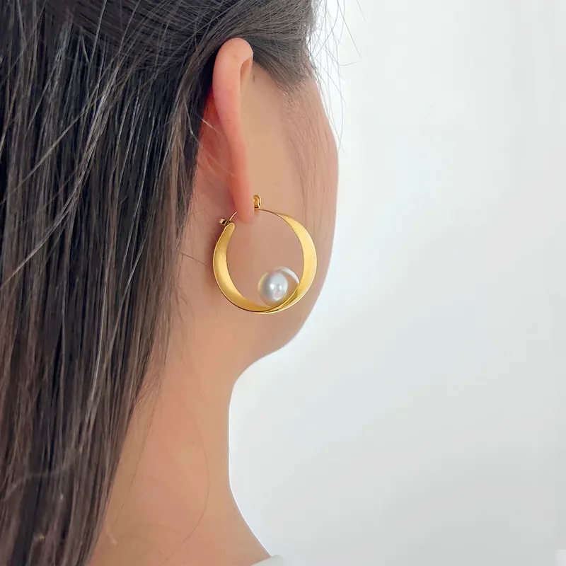Boucles d’Oreilles Dorées Cercle avec Perle