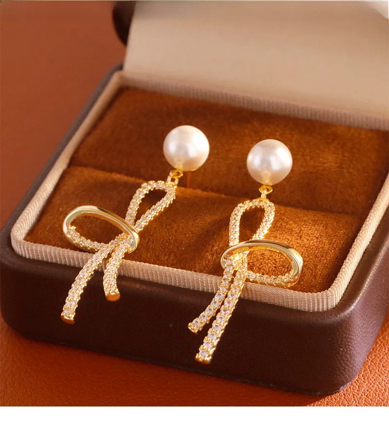Boucles d’Oreilles Perle & Nœud Doré