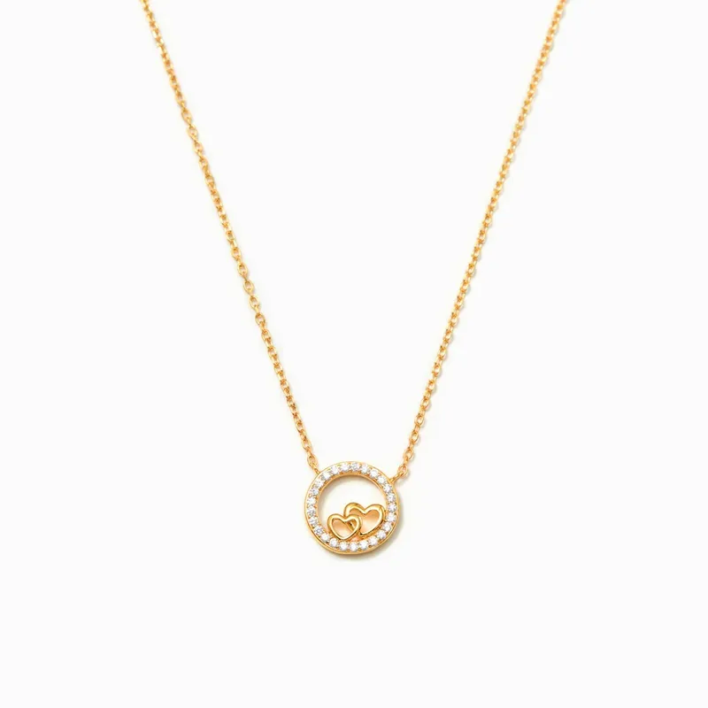 Collier Doré Cercle & Double Cœur