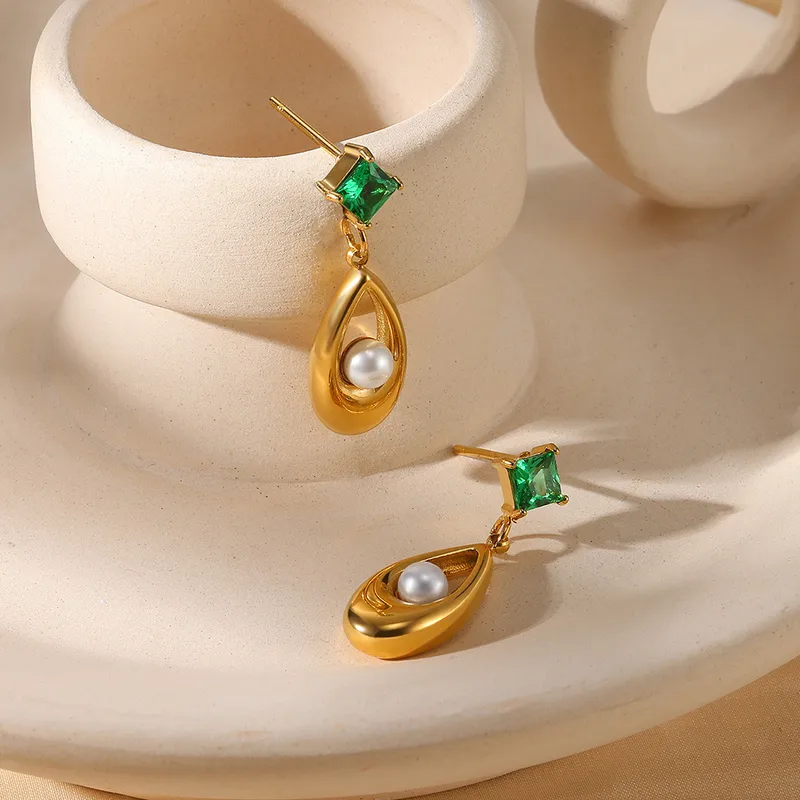 Pendants Goutte & Zircon Vert