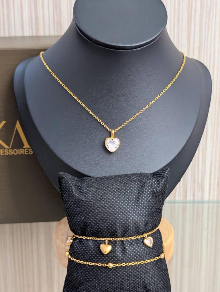 Set_Collier_Bracelet_Boucles d’oreilles multiples cœurs